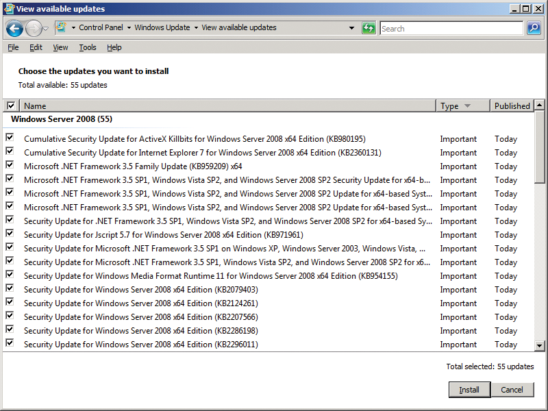 The underlying operating system for SBS 2008 is Windows Server 2008 Standard Edition. For this reason, you should always install the required service packs and patches for Windows Server 2008. Start by downloading the installation file for the service pack [1] and make sure you have the x64 variant.