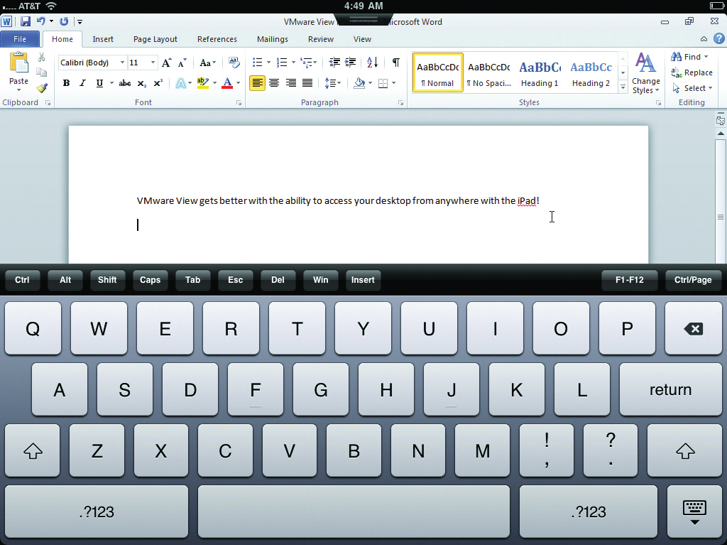 Text input from Bluetooth keyboards is supported, and VMware View works with iOS 4.2 and 4.3. Windows 7, XP, and Vista are all supported – although VMware only supports 32-bit Windows for Vista and XP.