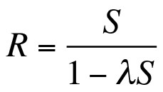 In other words, if you replace R by the service time S on the right-hand side of Equation (2), the output volume on the left-hand side is equal to the utilization (rho).
