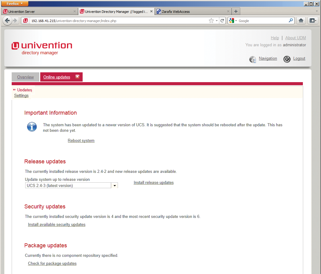 In the rest of this article, I will assume you have already installed a UCS DC Master and that the machine is working properly. If needed, you can find help configuring a Zarafa setup [3] using any Zarafa-capable Linux distribution as the basis.
