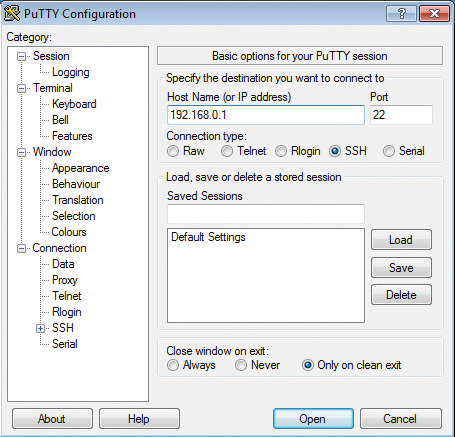 is sufficient to open a connection to the remote server, which then asks for the password to match the specified username and transfers the usernames and passwords in encrypted format. The process is the same for PuTTY, but you might not immediately notice, because the login takes place behind the graphical interface (Figure 1). For PuTTY, you only need to enter the desired target host in the Host Name field of the default Session tab.