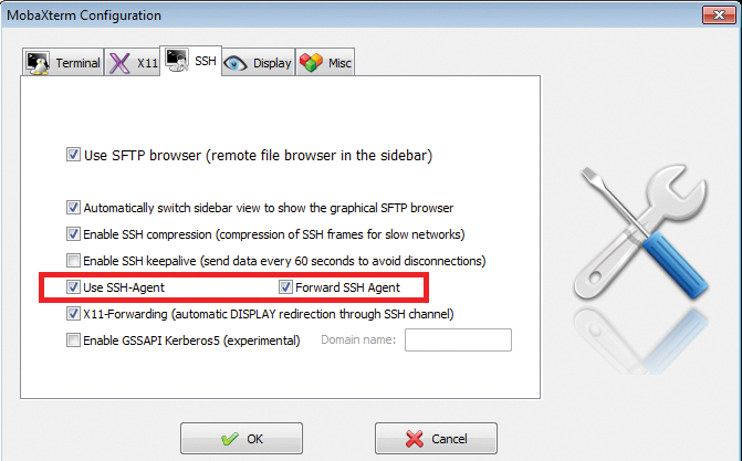 Linux has the ssh-add command for interacting with ssh-agent; the -l option lists the currently stored keys. With the Windows MobaXterm SSH client, you can easily enable the SSH agent, for example, in the program settings (Figure 6). The PuTTY Suite has the pagent (putty agent) tool for this.