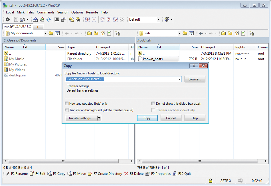 Because scp and sftp are based on SSH, WinSCP, like PuTTY, points out the unknown host key the first time you connect to a new server. If you trust the target host, you are taken to a Windows Explorer-like interface; its use is self-explanatory.