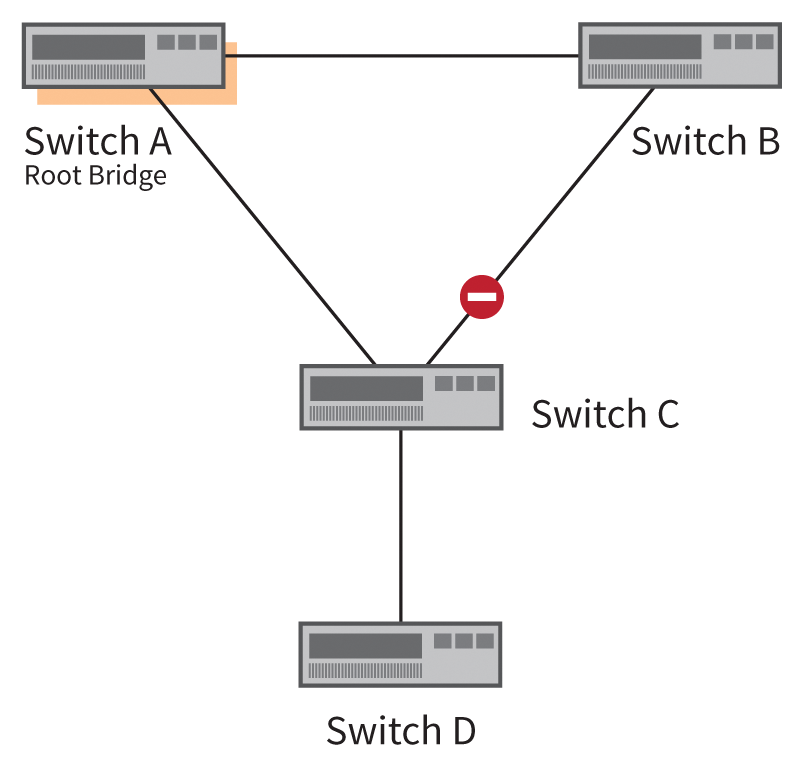 Figure 1: The Spanning Tree protocol prevents loops in network topologies.