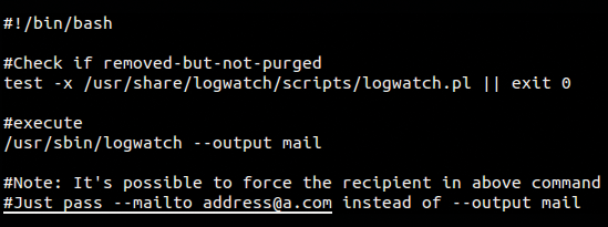 The file /etc/cron.daily/00logwatch (Figure 1) shows how to adjust the email recipient on Debian-based servers. However, the sendmail method explored earlier is more universally accepted. The cron implementation on other Unix-like flavors varies dramatically, and I've seen unwieldy logwatch scripts run straight from cron. Because logwatch is triggered as a cron job, however, that means you can also run it manually, and because it's a complex shell script, you can change much of its internal functionality.