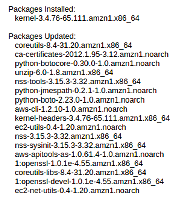 Figure 3: All packages I installed and upgraded on an Amazon Linux server running on AWS EC2.
