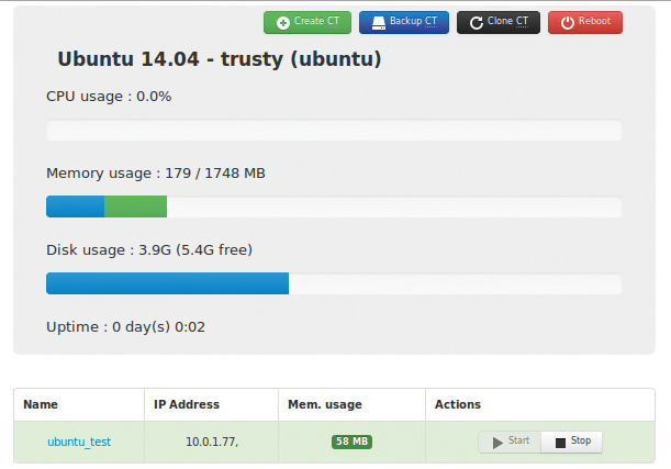 A first stable version of the LXC [3] userspace tool has been used to manage containers since February 2014. Ubuntu 14.04 has LXC 1.0 on board, which the developers recommend and will provide support for until April 2019 (Figure 1). If you want to install LXC in Ubuntu Trusty Tahr, you are best off using the v14.04.1 [4] server images. Kernel 3.13 (used here) has five years of LTS support; this doesn't apply to the kernels of newer LTS updates. You can get the LXC tools after installation by entering: