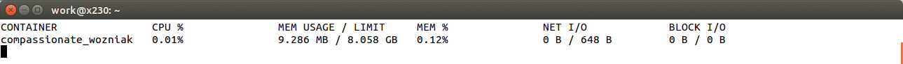 The docker stats command (Figure 2) shows CPU usage, memory usage, and network I/O. The data display is refreshed automatically. If you want to automate the process, you are better off disabling this feature with the --no-stream parameter, so you only see the first result for each case.