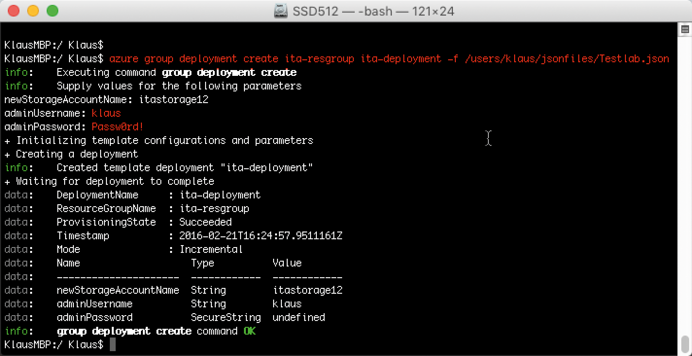 > azure group deployment create ita-resgroup ita-deployment -f /users/klaus/jsonfiles/Testlab.json