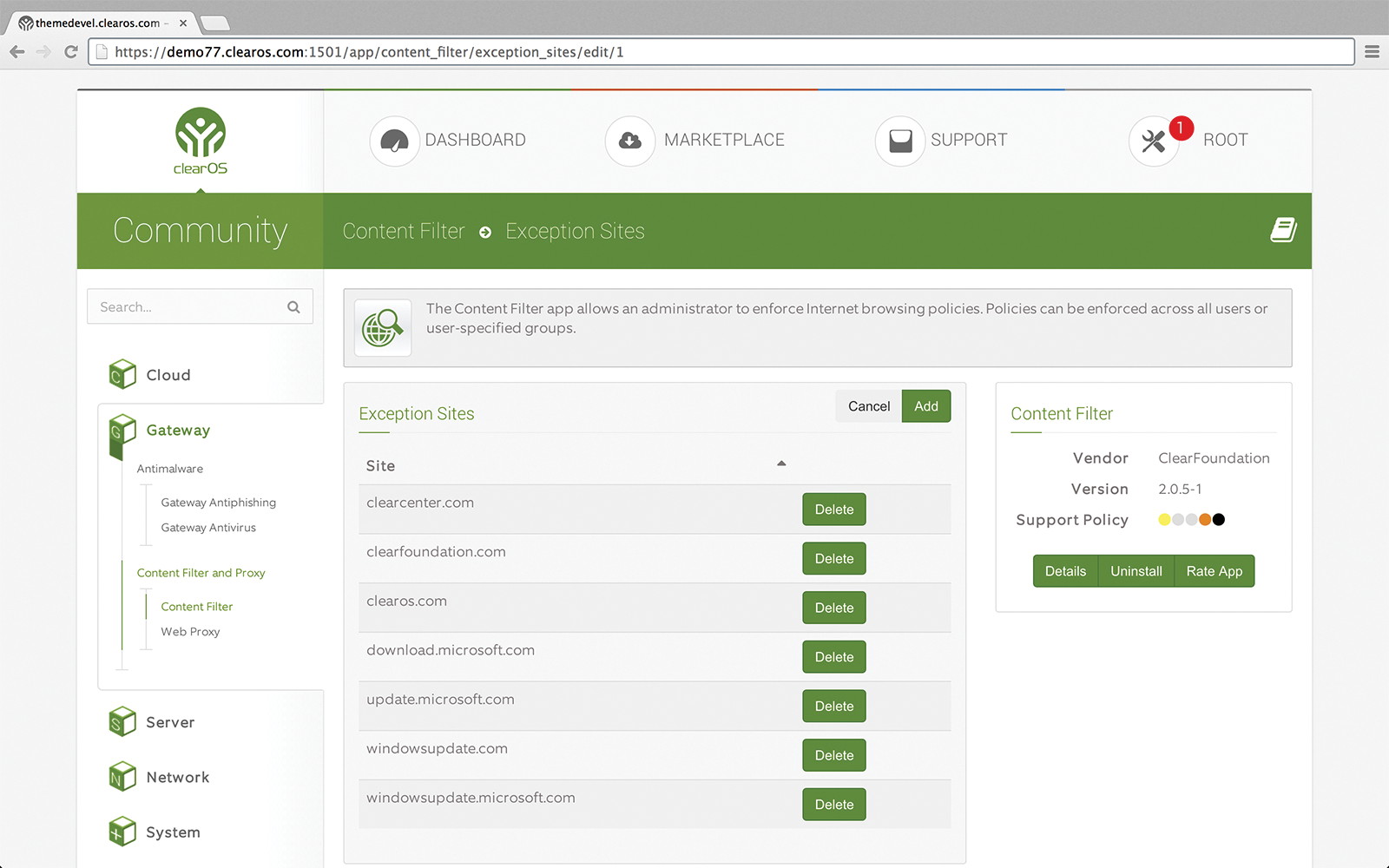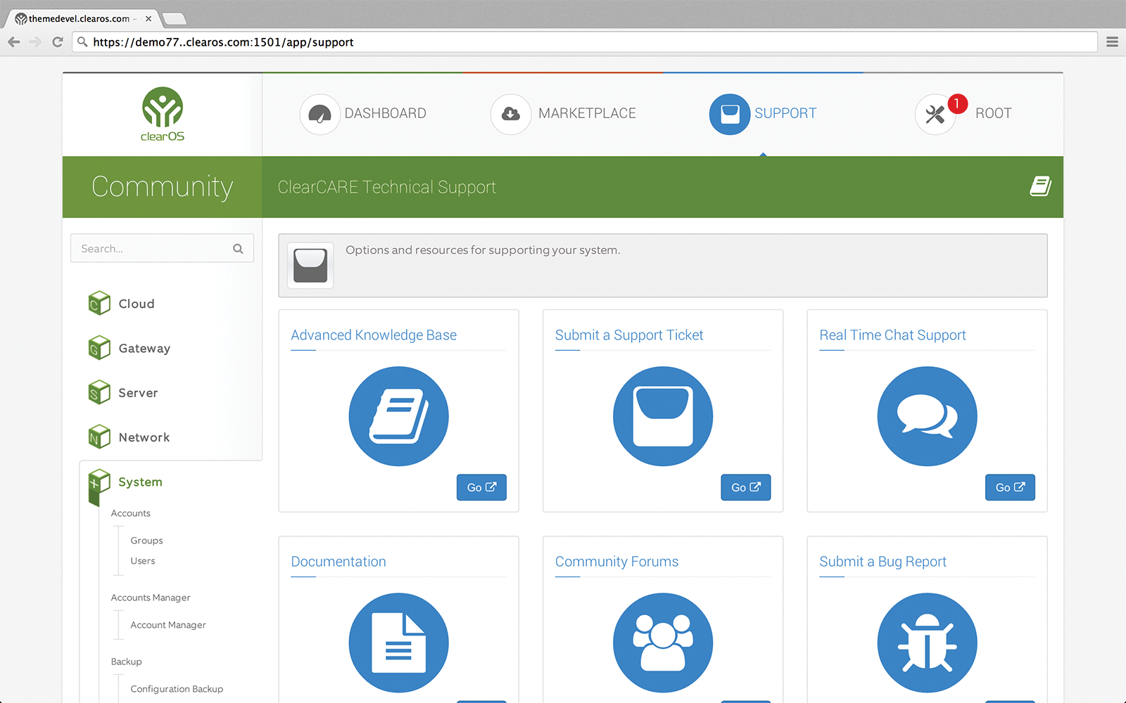 ClearOS [1] provides a simple and easy-to-use platform for all layers of the IT environment. Through the ClearOS Marketplace, you can expand functionality with the choice of more than 100 applications for intrusion detection, content filtering, firewalls, bandwidth management, domain control, and more. ClearOS was ranked as the number 1 "Linux small business server" by Small Business Computing.com [2].